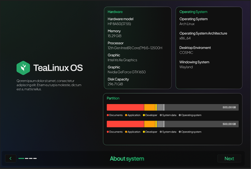 TeaLinuxOS adalah distro Linux turunan Ubuntu yang beralih ke Arch Linux, dikembangkan oleh Dinus Open Source Community (DOSCOM) dan kawan-kawan. Mengusung filosofi “Nikmatnya sebuah racikan.” TeaLinuxOS dikembangkan secara terbuka dan kolaboratif untuk menghadirkan distro sebagai kanvas fleksibel yang dapat digunakan di berbagai bidang.
